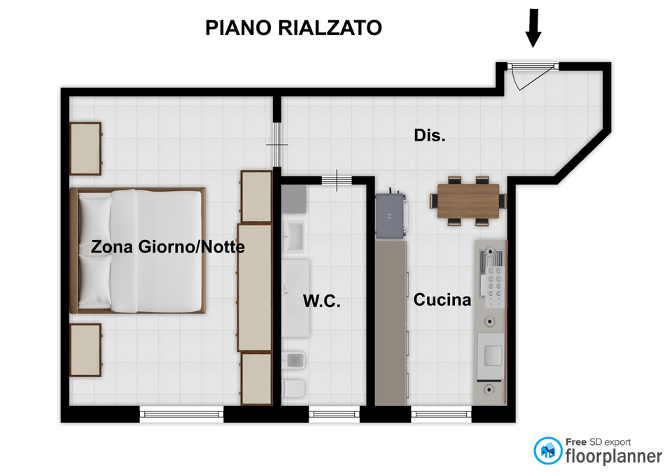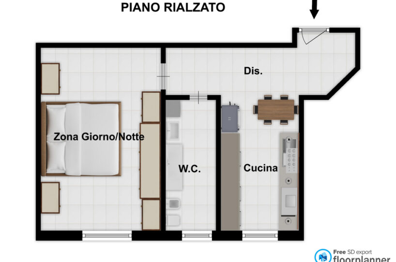 L’immobile è così composto: ingresso su disimpegno, ampia cucina abitabile, zona notte con comodo bagno finestrato e camera matrimoniale; Lo stato interno si presenta in ottime condizioni: i serramenti in alluminio doppio vetro garantiscono un’elevata tenuta termico-acustica; i pavimenti dell’appartamento sono in ceramica chiara ed il bagno è stato recentemente ristrutturato e rivestito con gres porcellanato. Cantina di pertinenza!