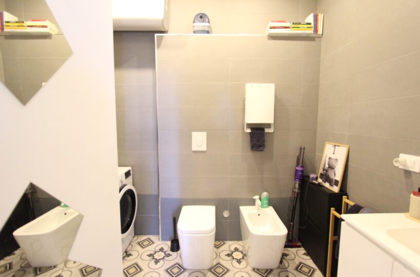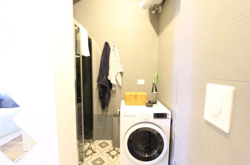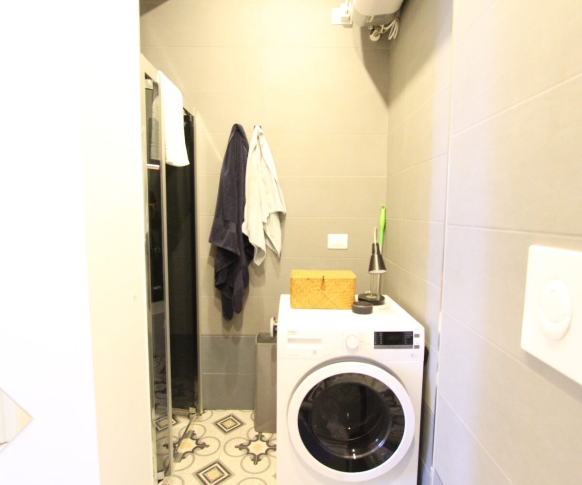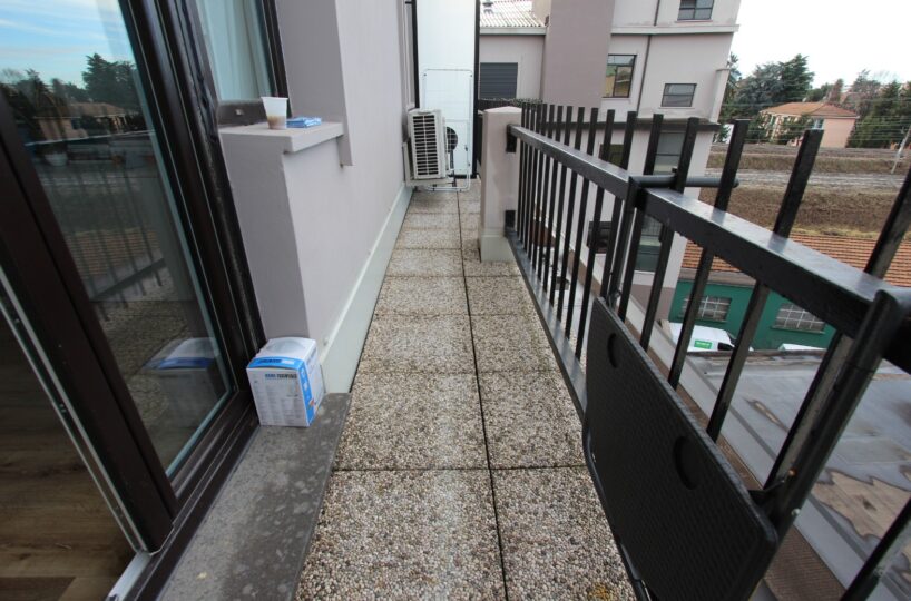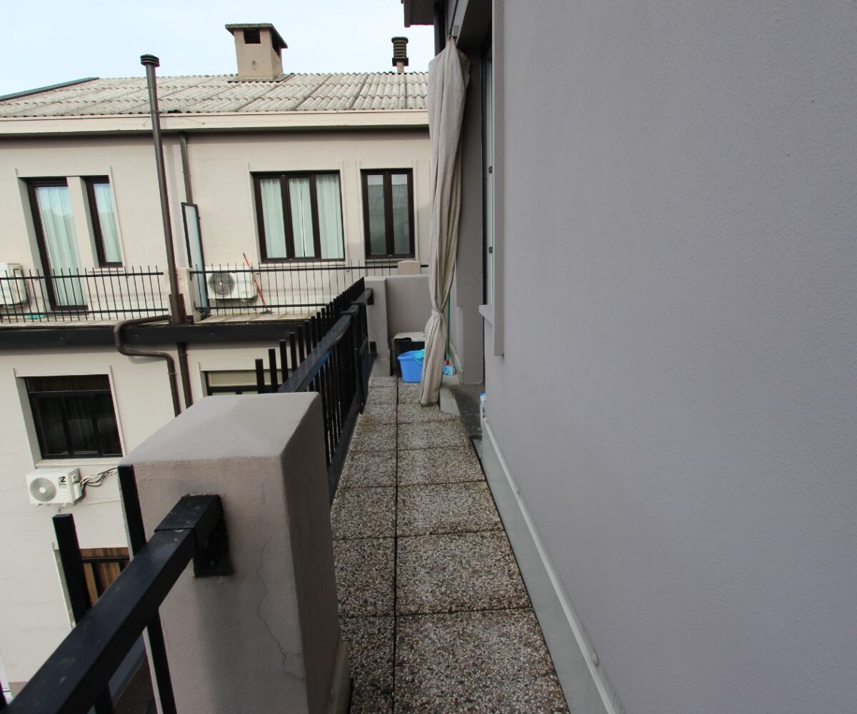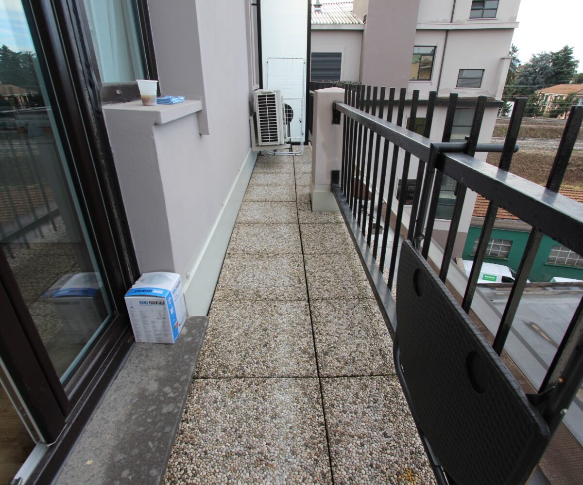 L’immobile è composto da un ingresso diretto nella zona giorno con cucina a vista e affaccio su ampio balcone, una camera matrimoniale ed un bagno con box doccia ed attacchi lavatrice.