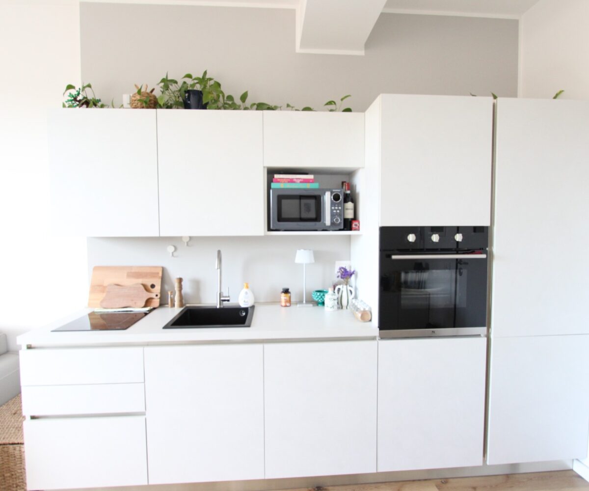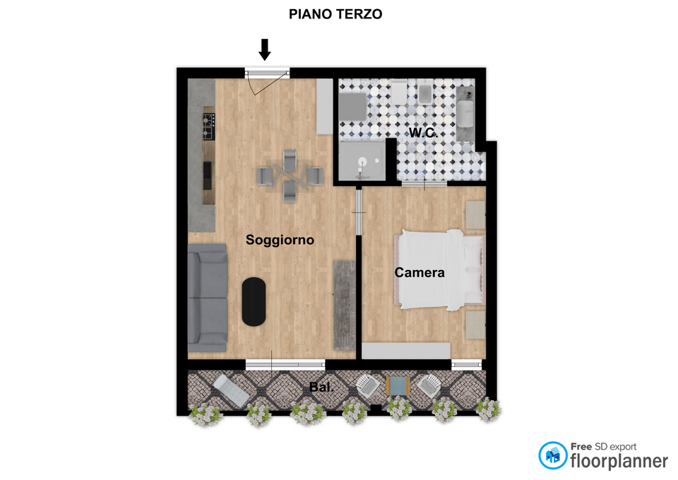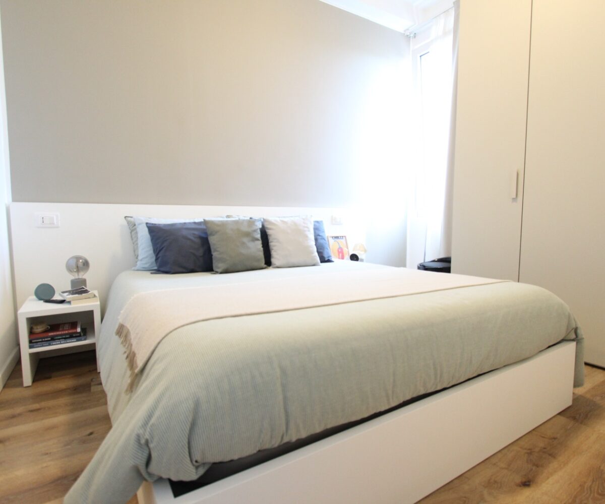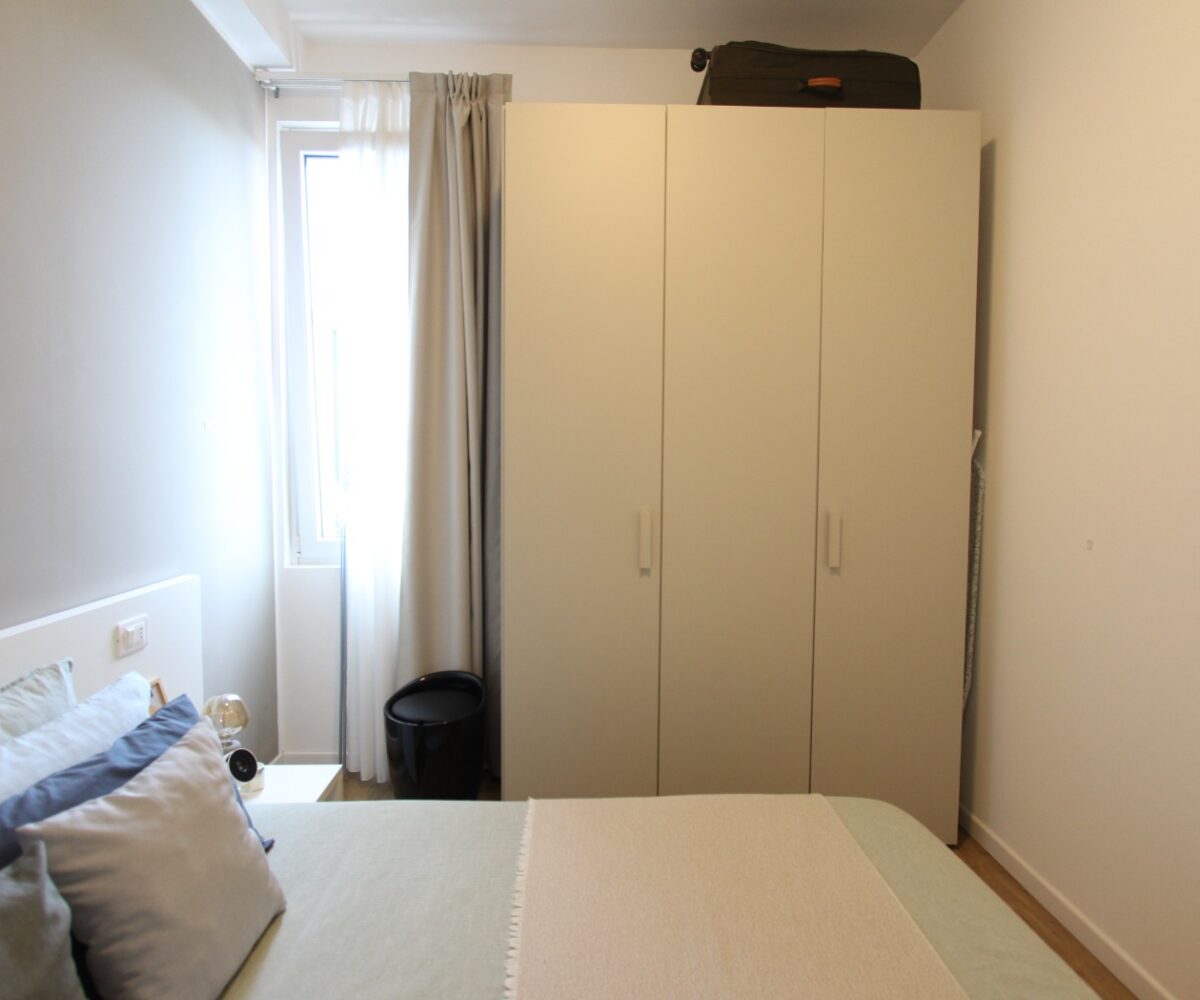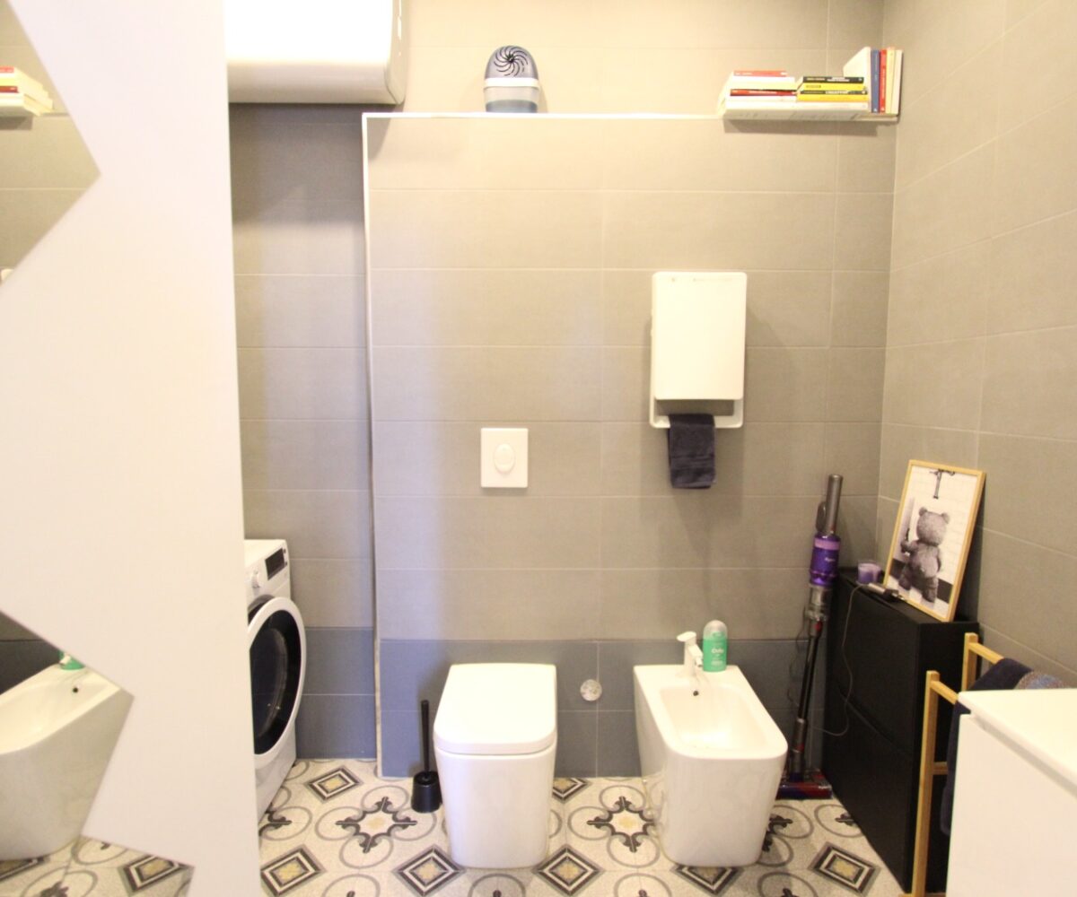 L’immobile è composto da un ingresso diretto nella zona giorno con cucina a vista e affaccio su ampio balcone, una camera matrimoniale ed un bagno con box doccia ed attacchi lavatrice.
