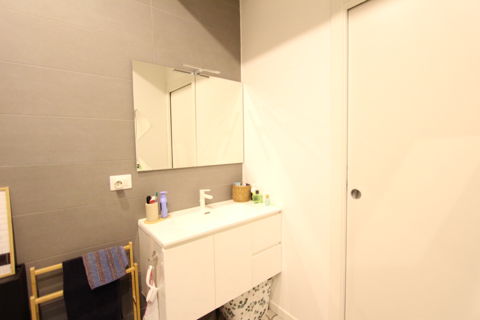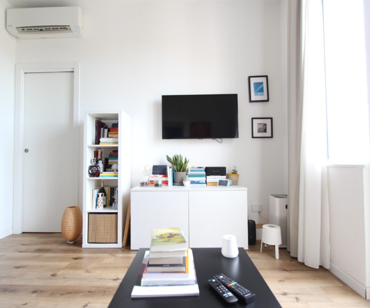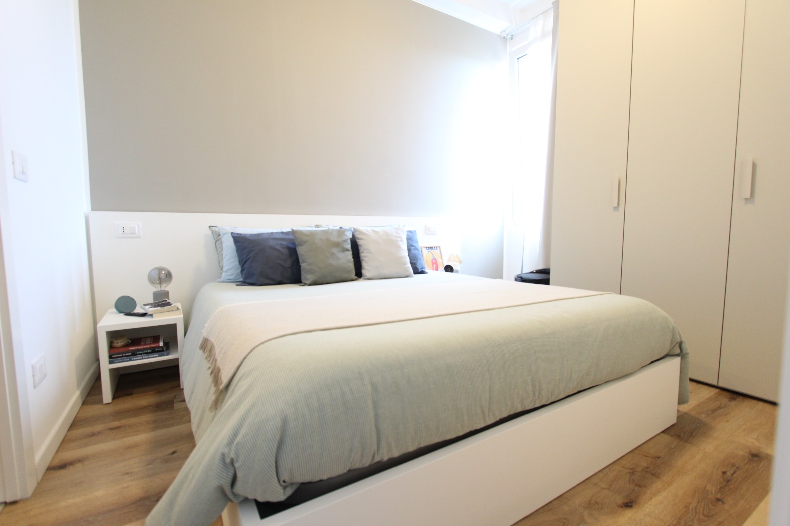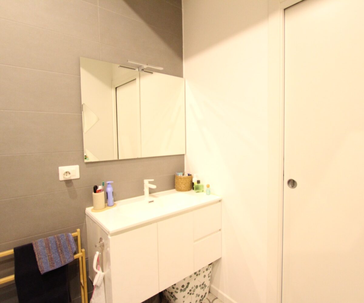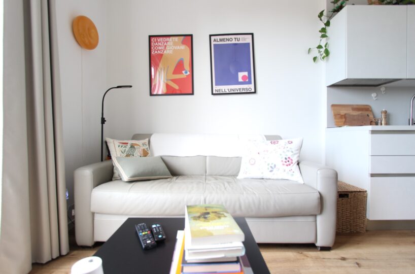 L’immobile è composto da un ingresso diretto nella zona giorno con cucina a vista e affaccio su ampio balcone, una camera matrimoniale ed un bagno con box doccia ed attacchi lavatrice.